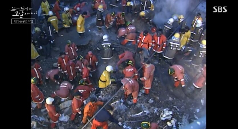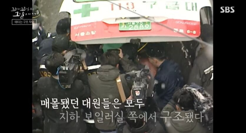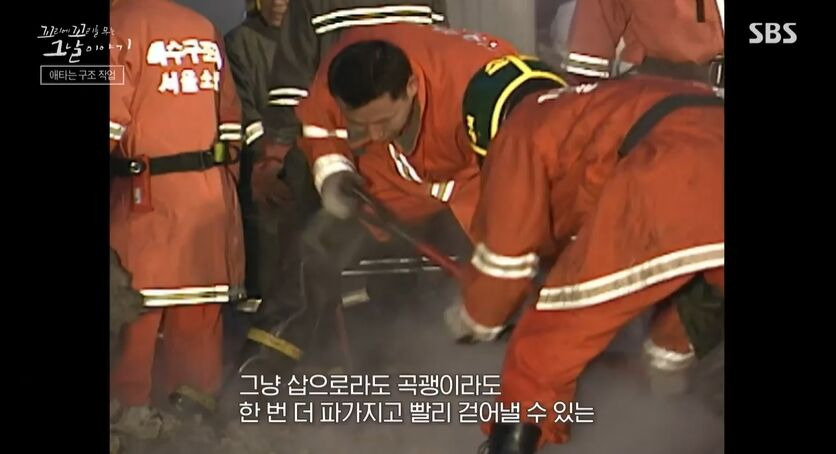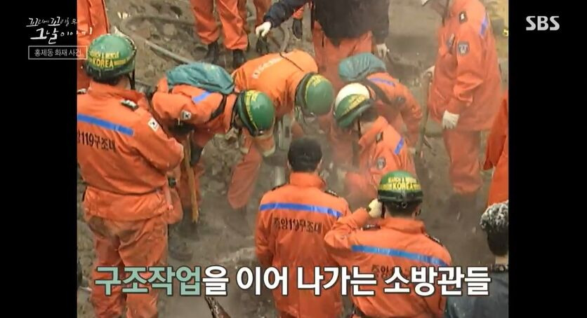 소방관들은 다시 불길 속으로 뛰어들어 아들을 찾기 위한 수색을 시작했습니다. 하지만 열기와 유독가스로 인해 시야가 좋지 않고, 위험한 상황에 직면했습니다. 그때 건물이 무너져 대원 7명이 매몰되는 사고가 발생했습니다.