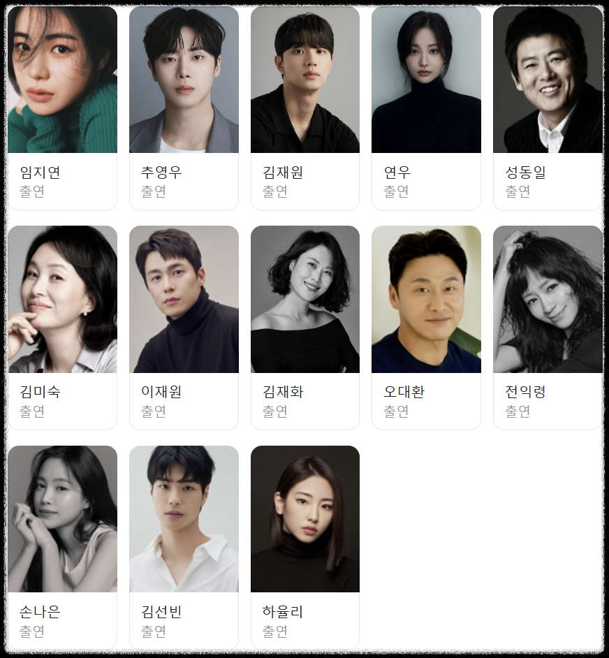 - 실력파 배우들의 화려한 조합! 임지연, 추영우 뿐만 아니라, 성동일, 김미숙 등 베테랑 배우들의 열연이 기대됩니다.